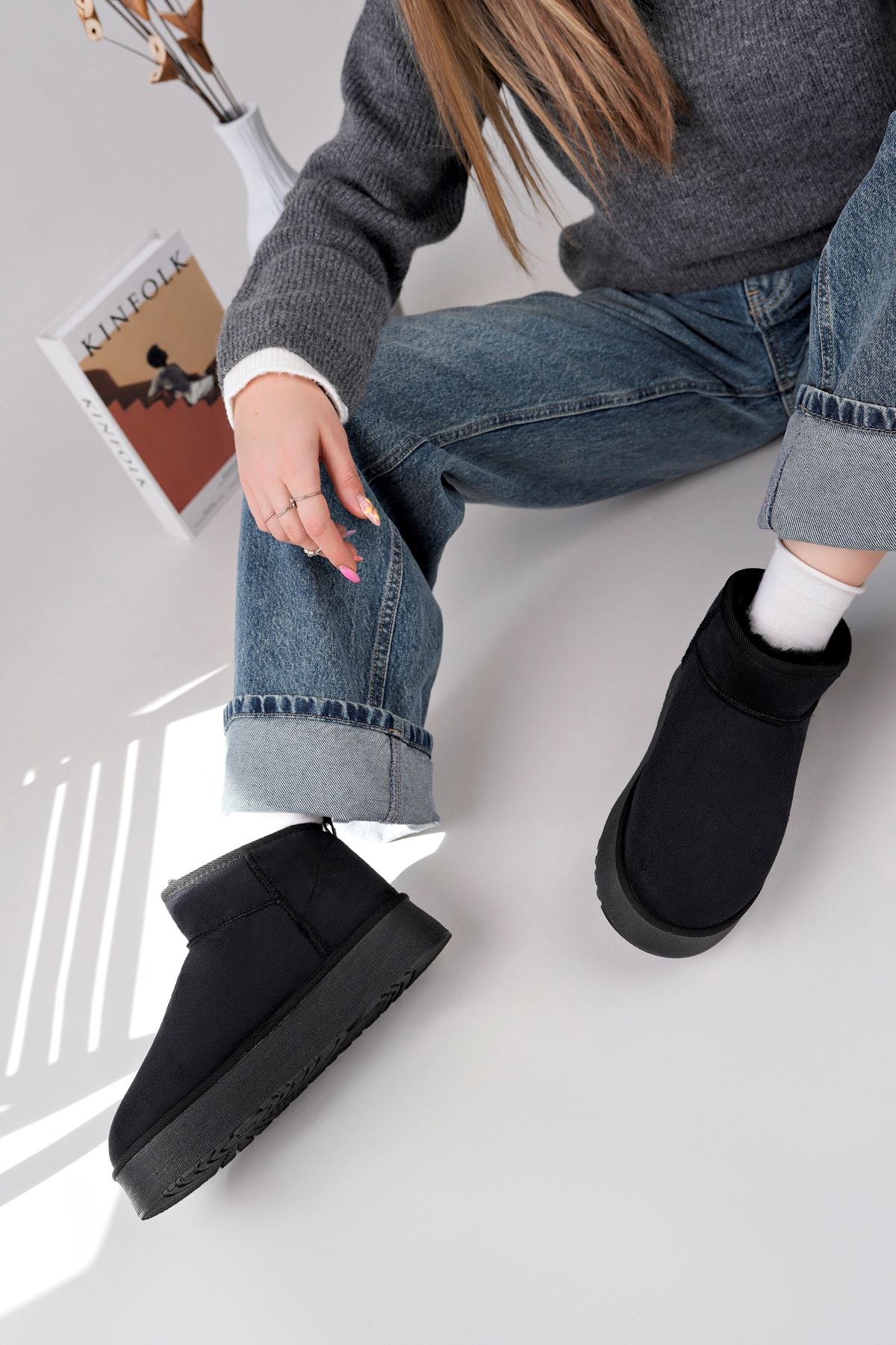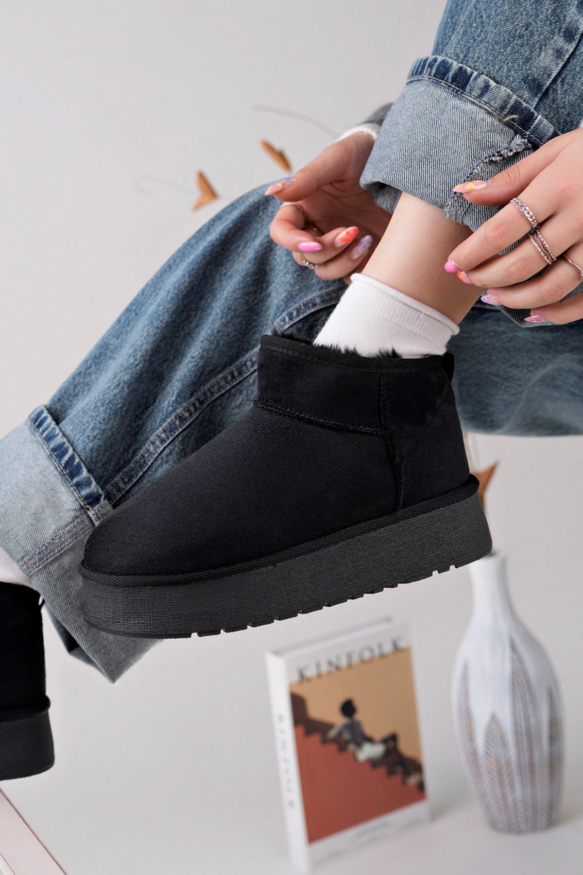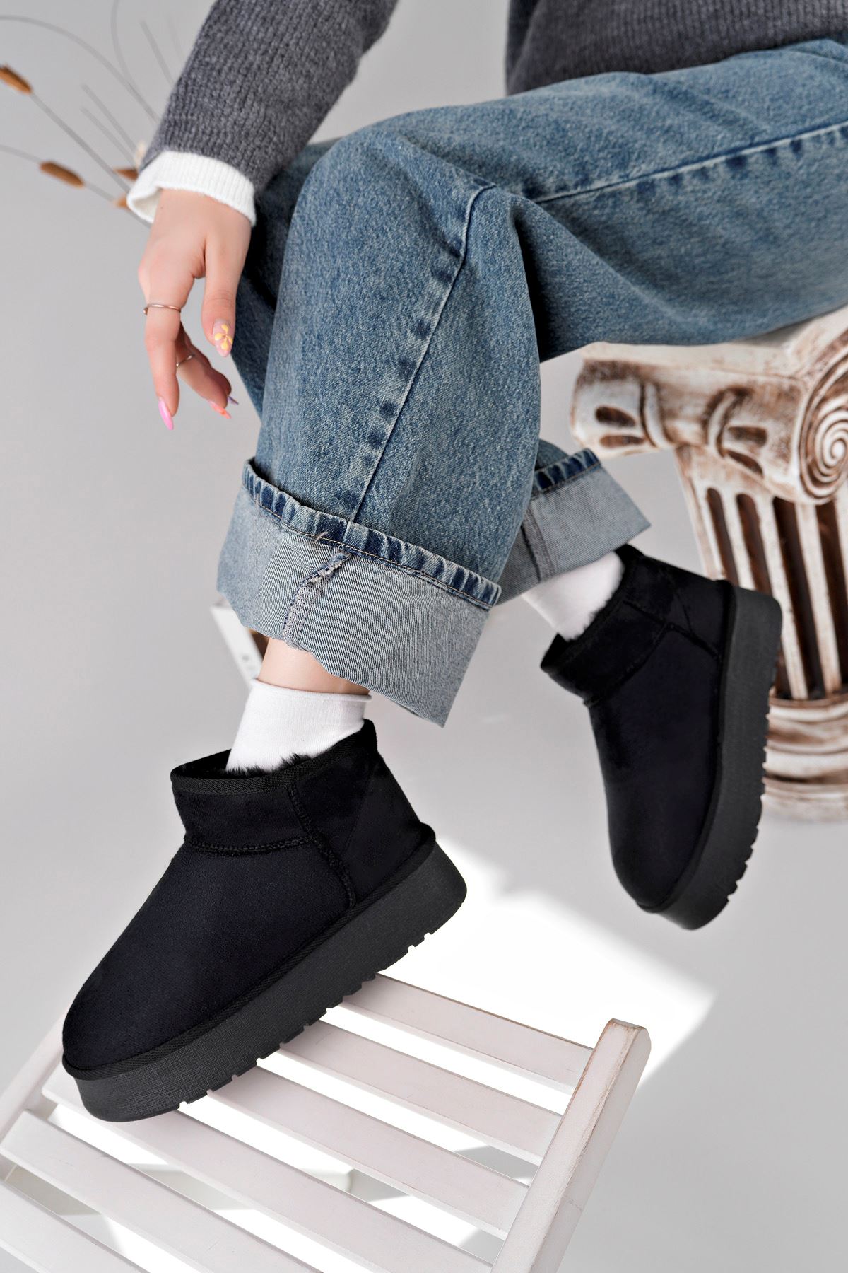 ;Kadın Garantili İçi Kürklü Kısa Hafif Taban Kışlık Uggm.302