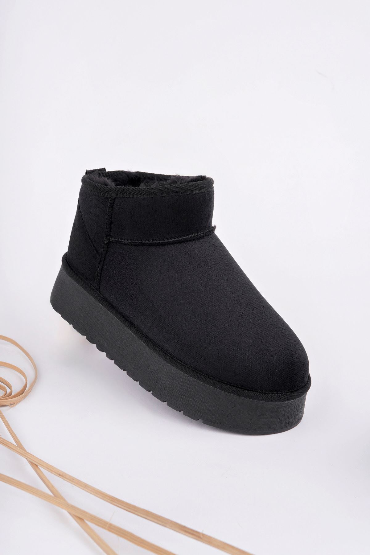 Freemax Kadın Garantili İçi Kürklü Hafif Taban Mini Bot Uggm.302 Siyah