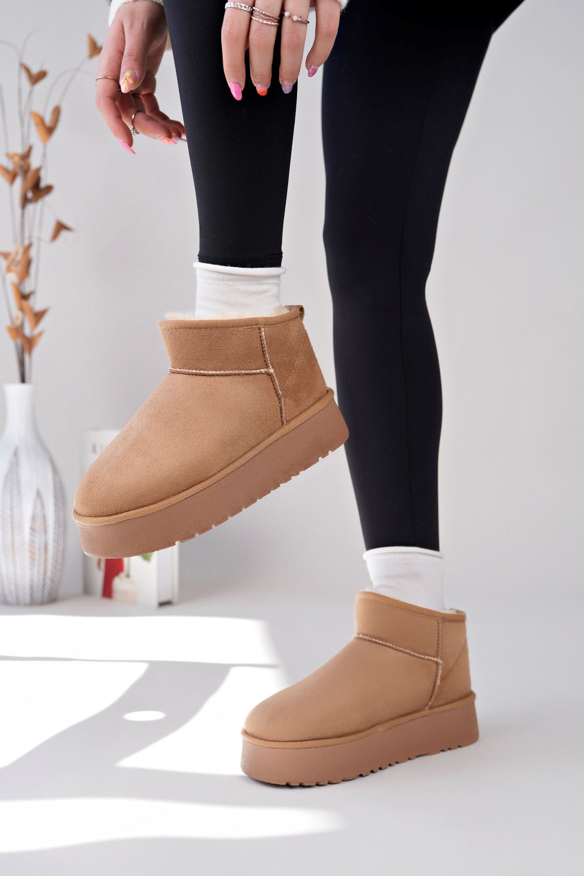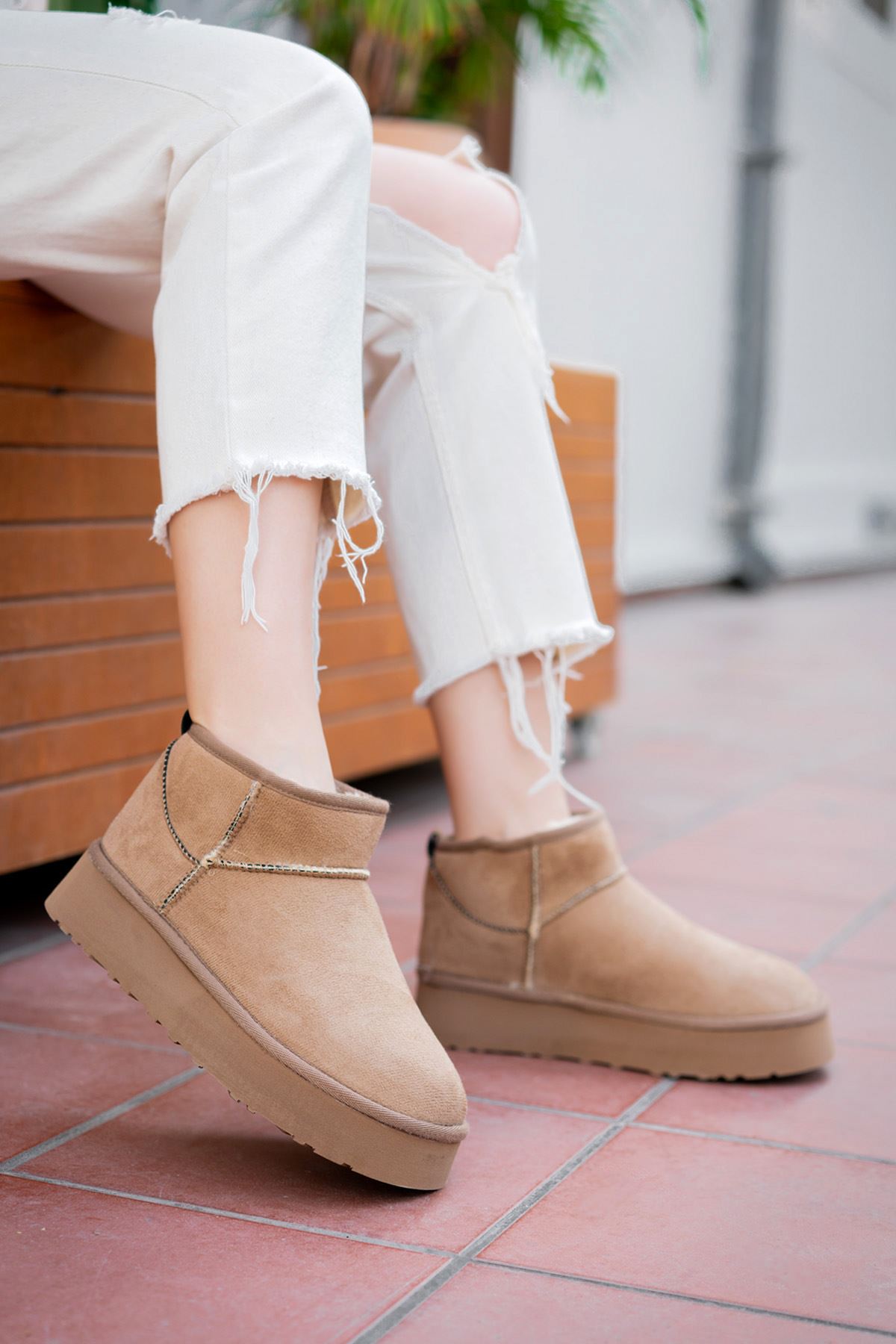 Freemax Kadın Garantili İçi Kürklü Hafif Taban Mini Bot Uggm.302 Vizon