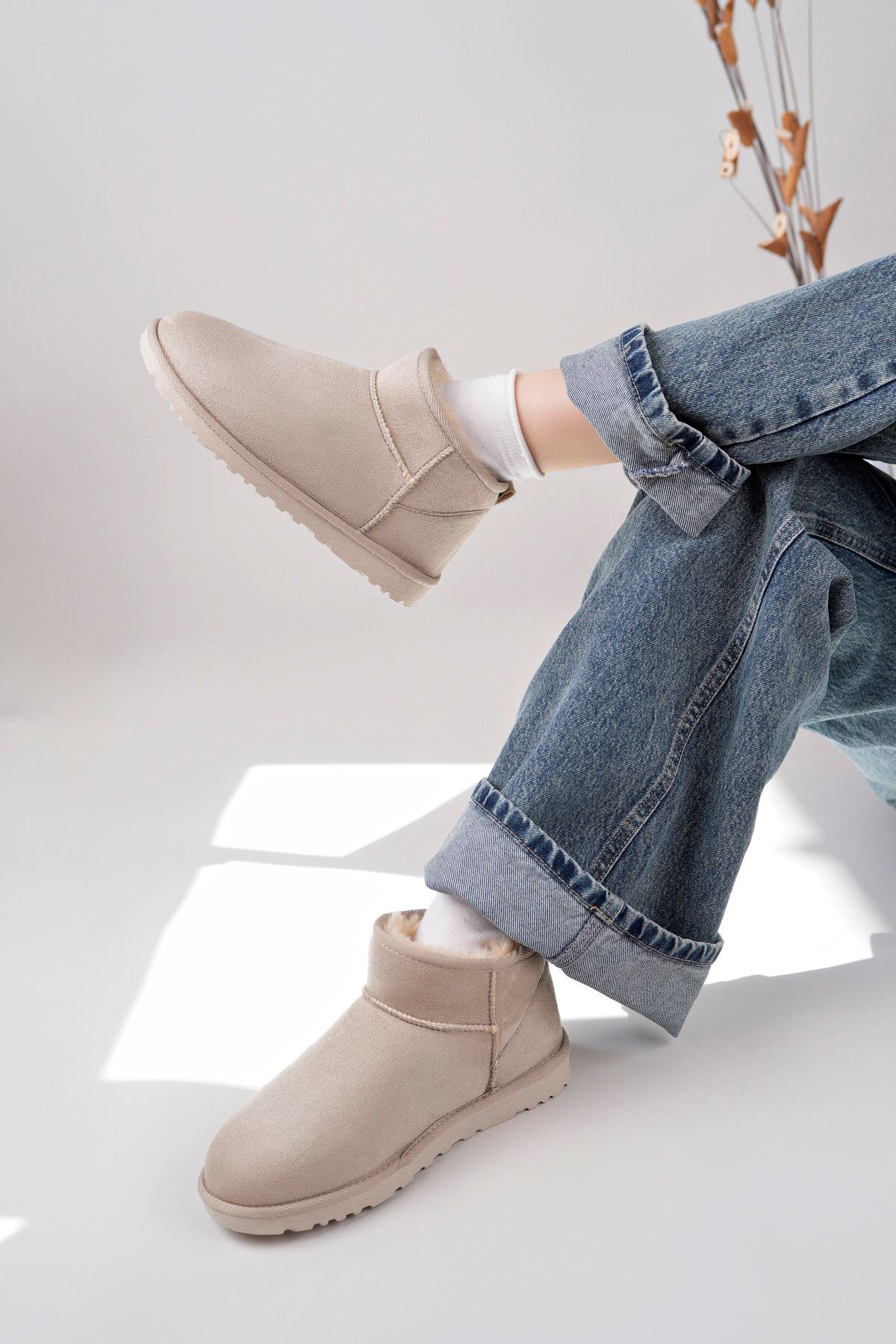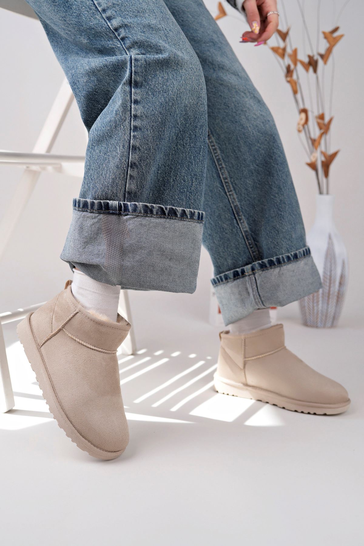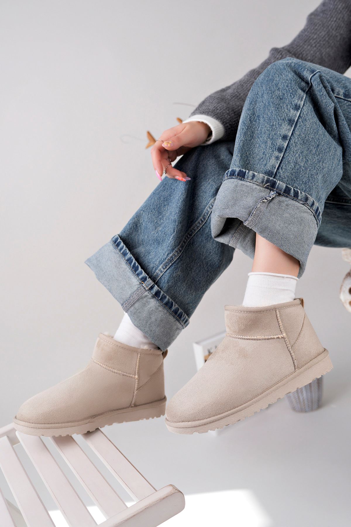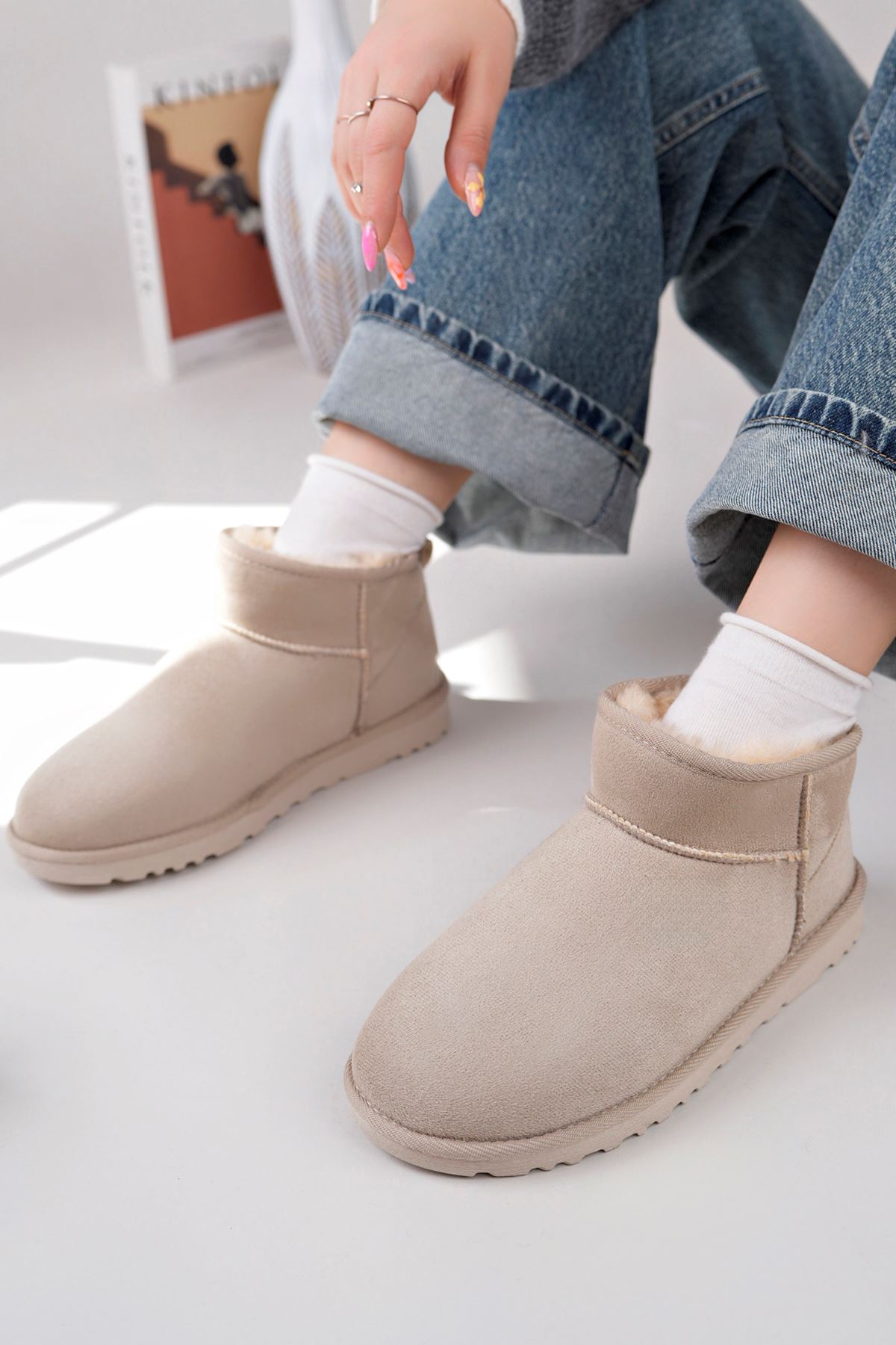 Freemax Kadın Garantili İçi Kürklü Hafif Taban Mini Bot Uggmini301 Bej