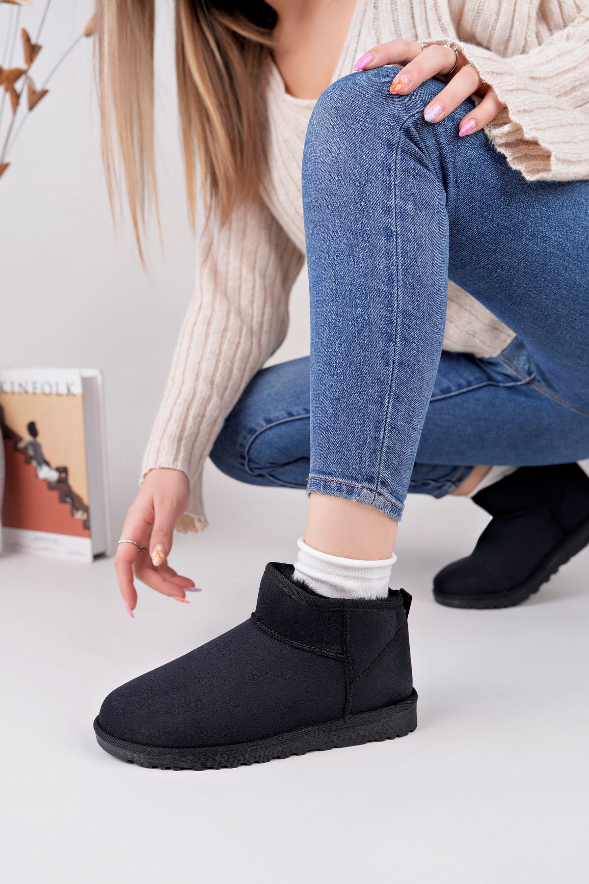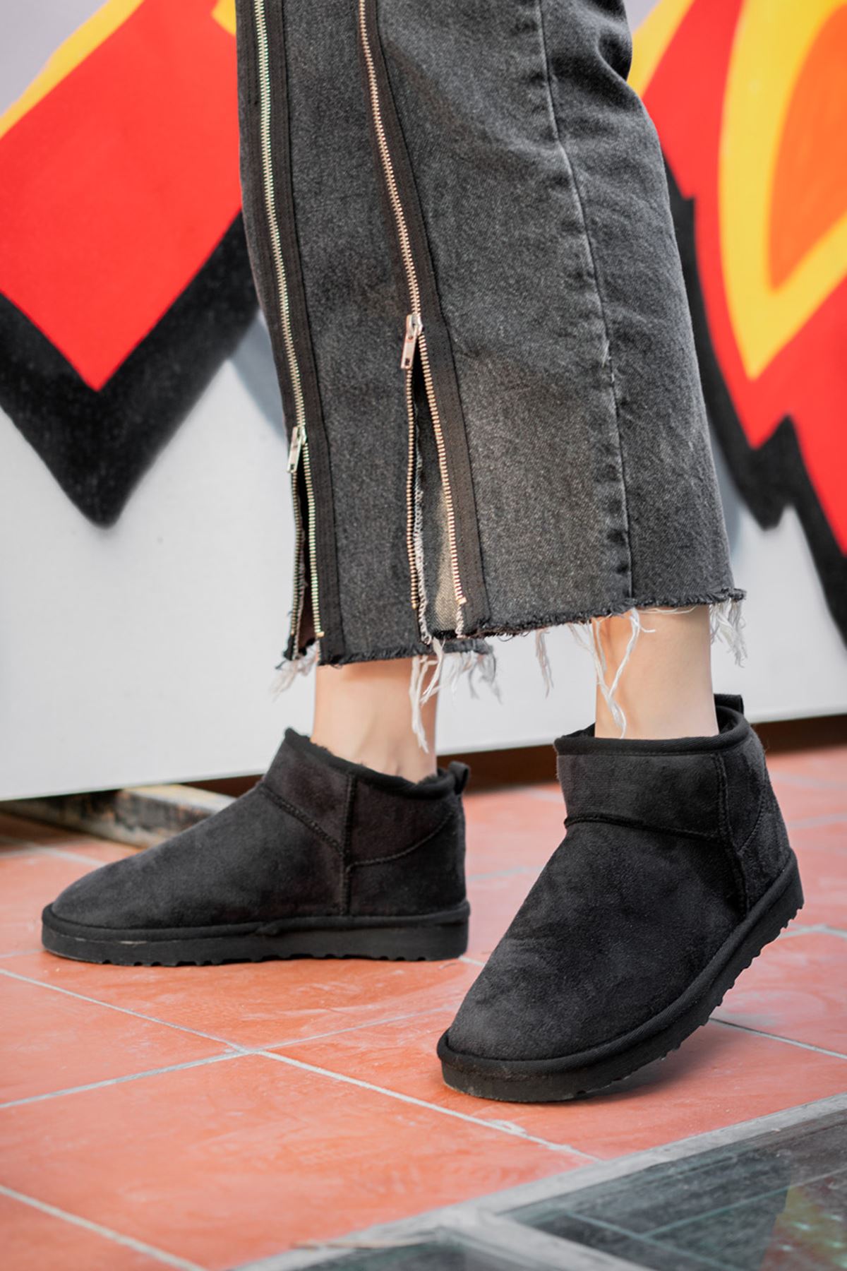 ;Kadın Garantili İçi Kürklü Kısa Hafif Taban Kışlık Uggm.301