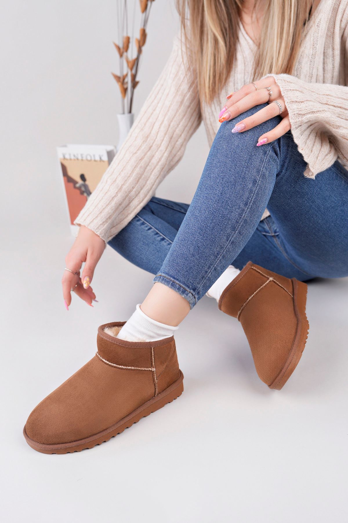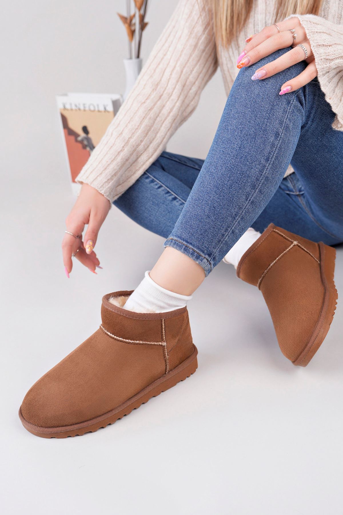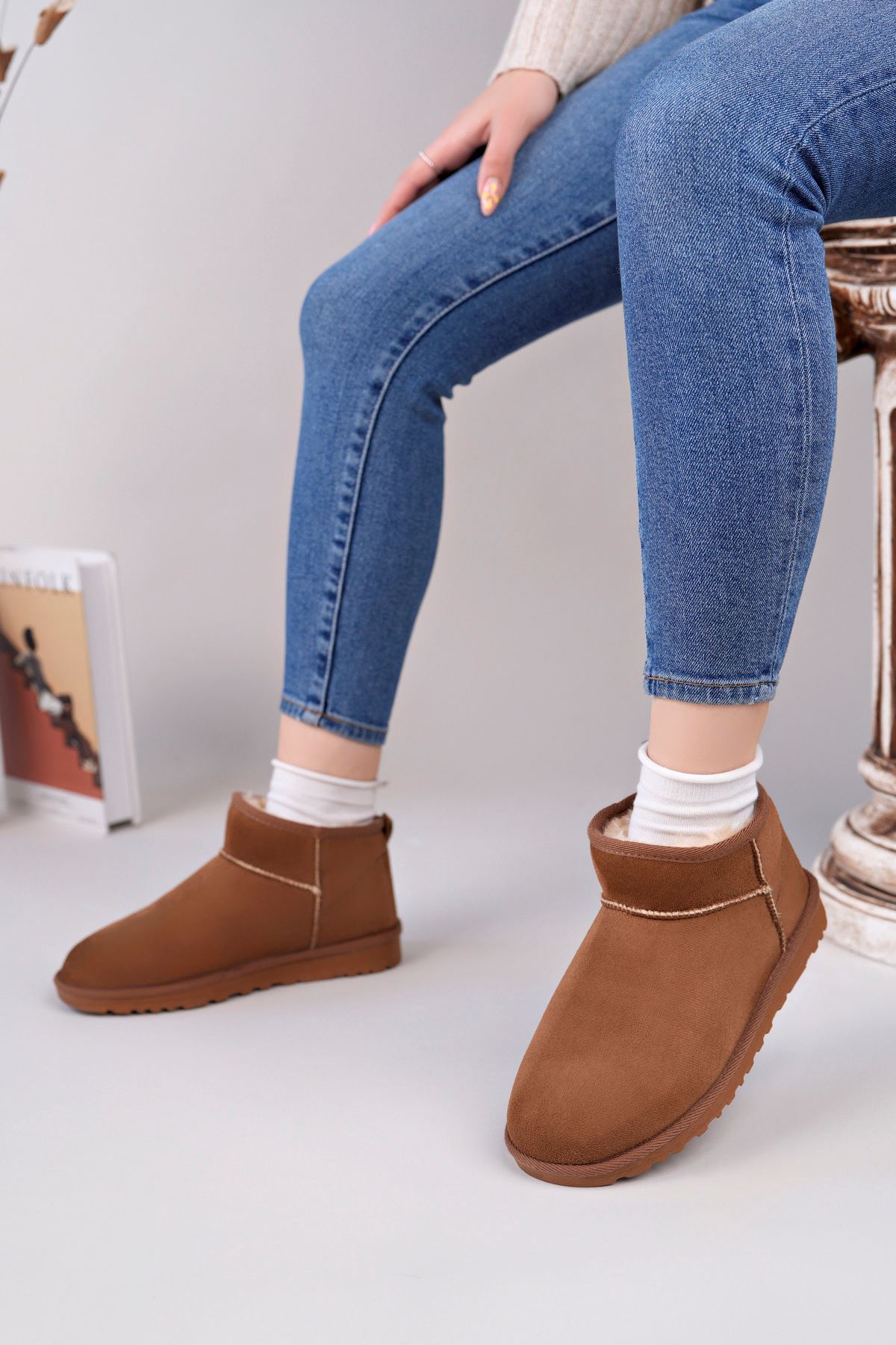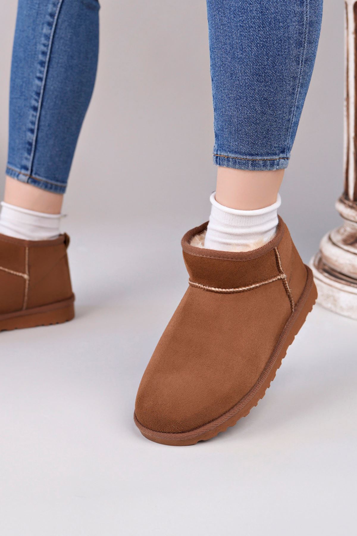 ;Kadın Garantili İçi Kürklü Kısa Hafif Taban Kışlık Uggm.301