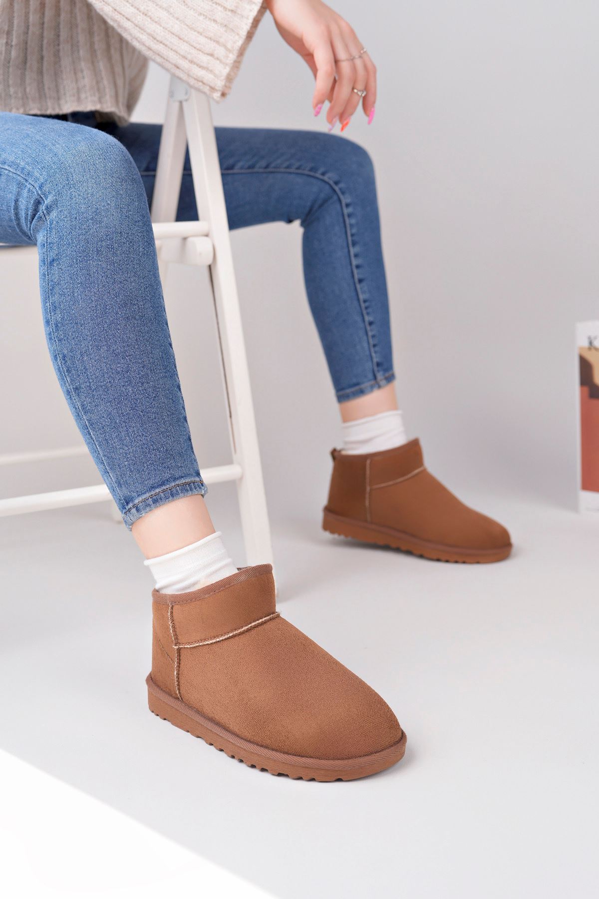 Freemax Kadın Garantili İçi Kürklü Hafif Taban Mini Bot Uggmini301 Taba