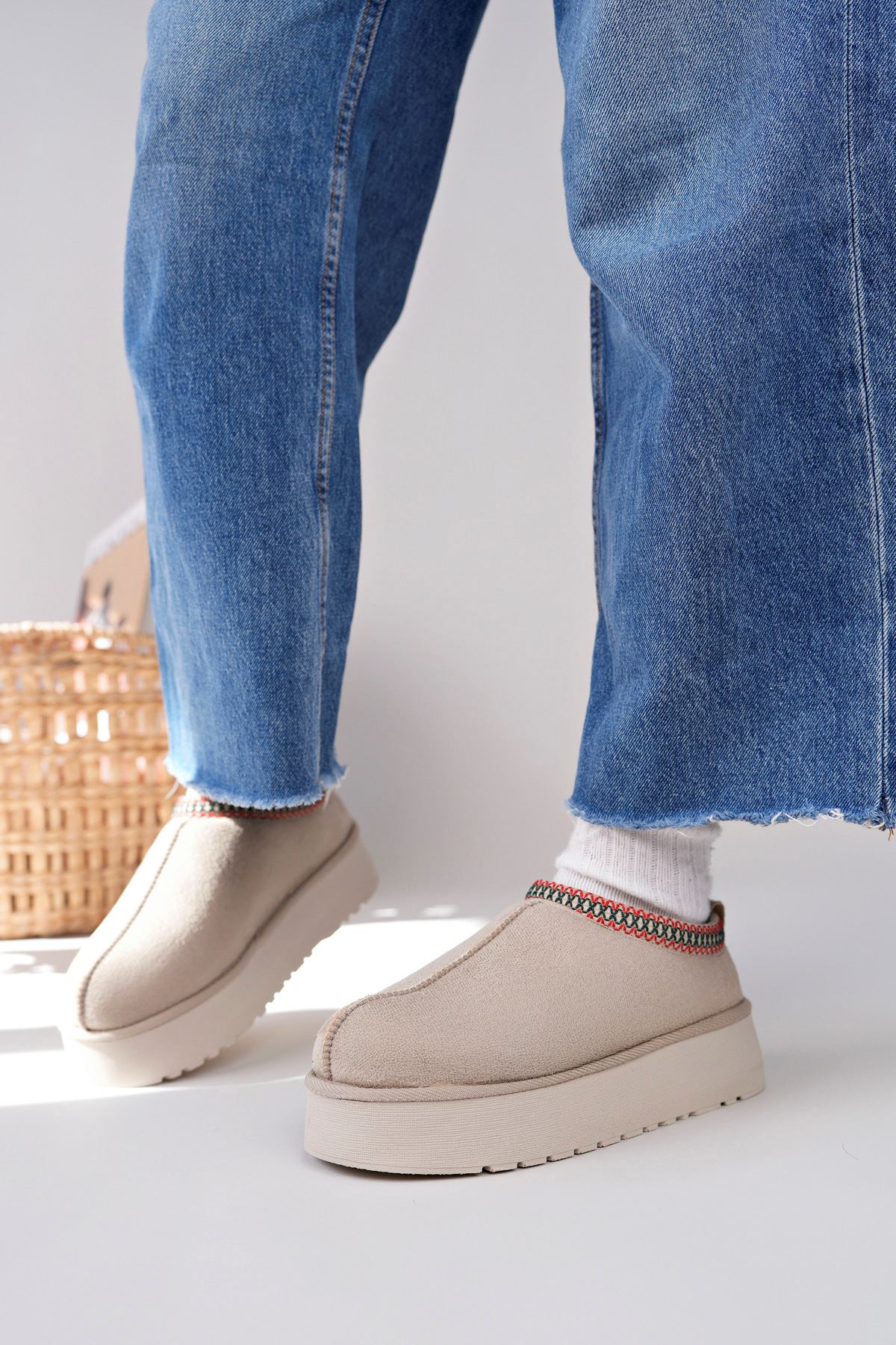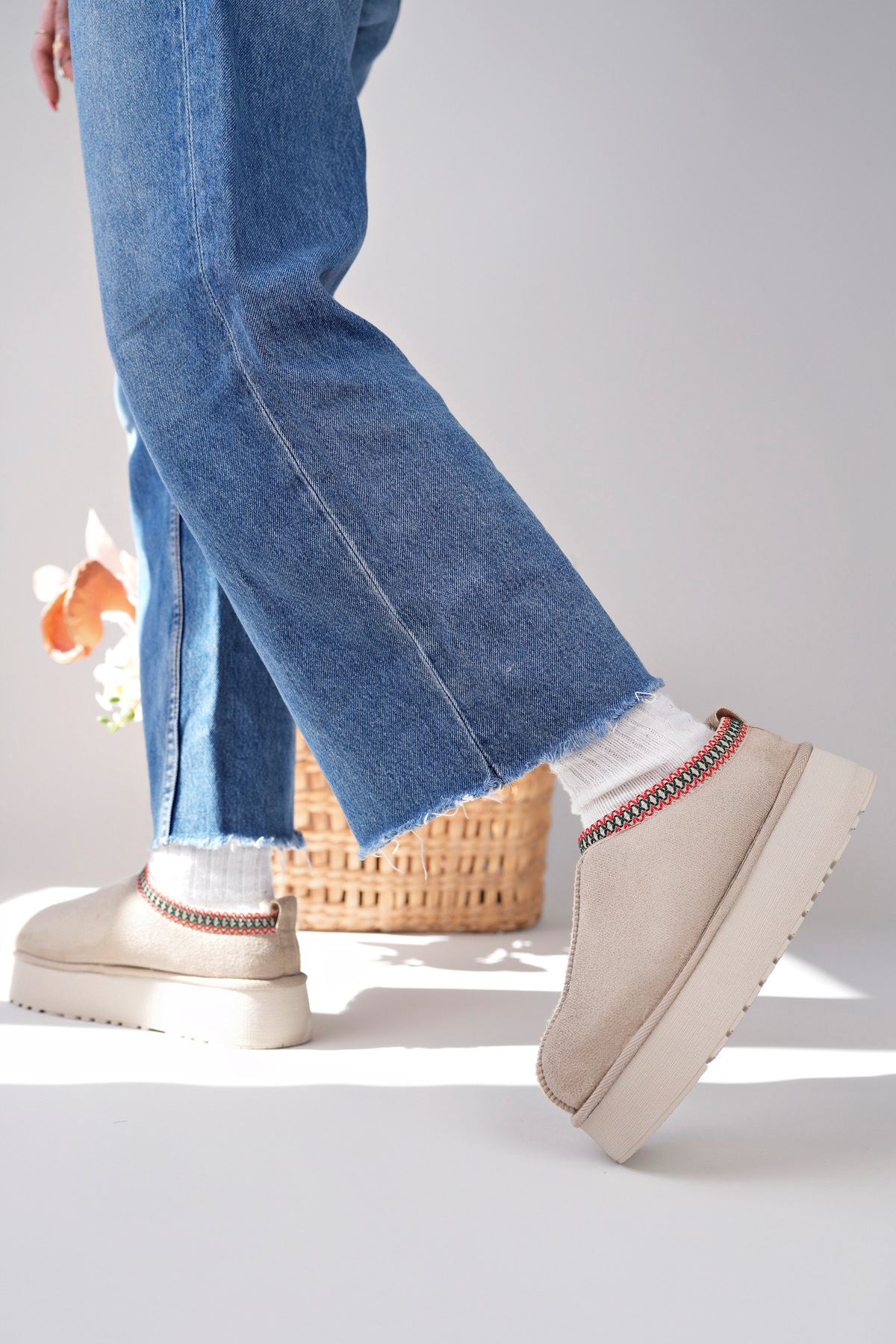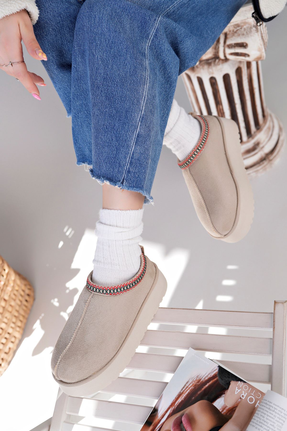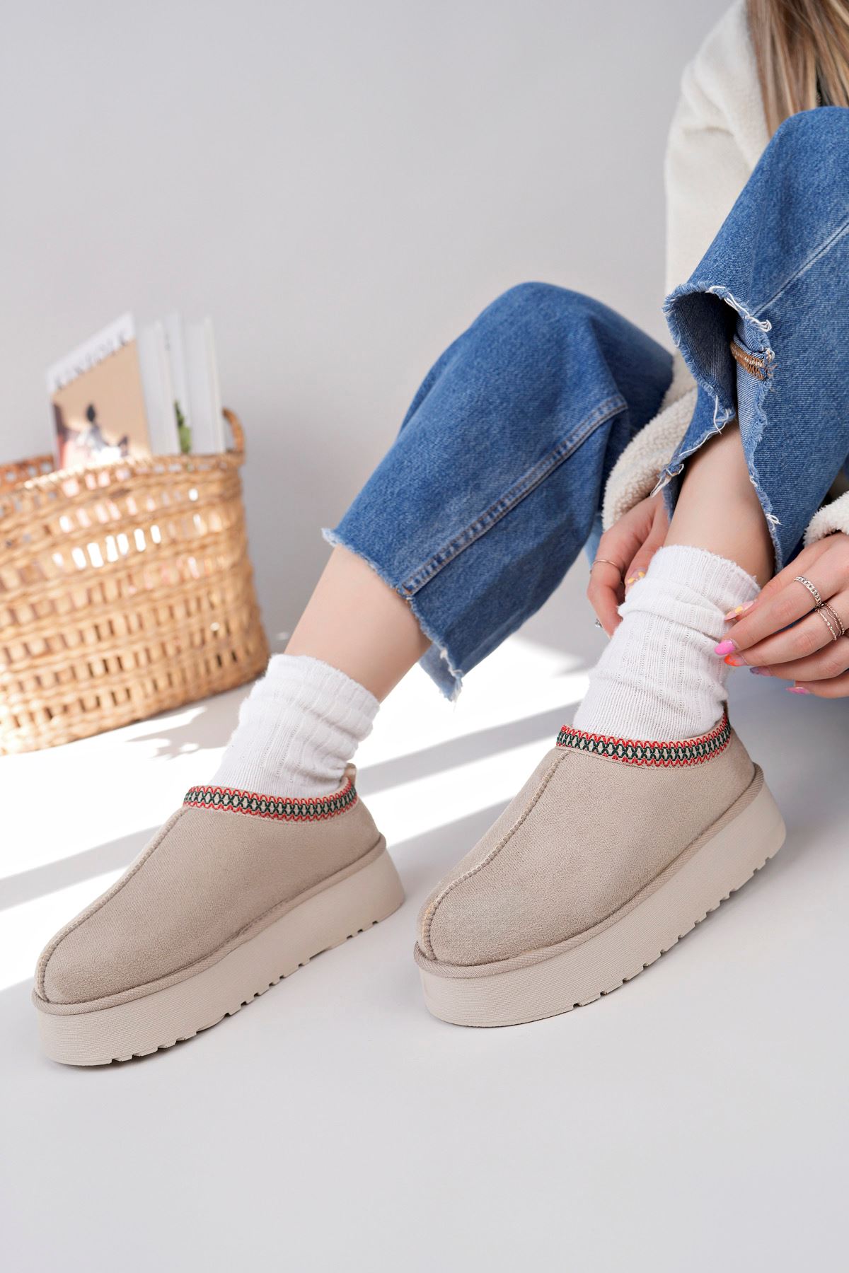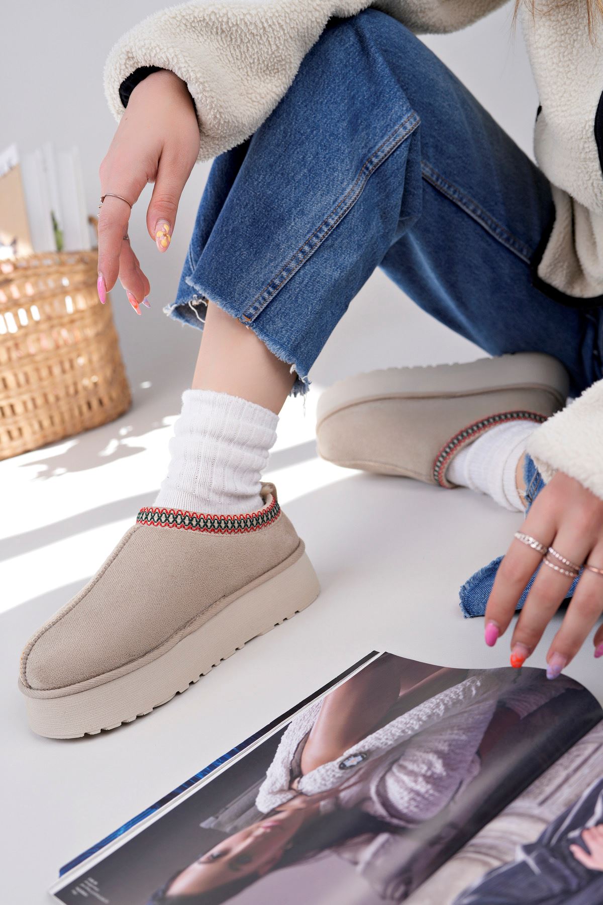 Freemax Kadın Garantili İçi Kürklü Hafif Yüksek Taban Mini Sabo Ev Terliği UggSabo.303 Bej