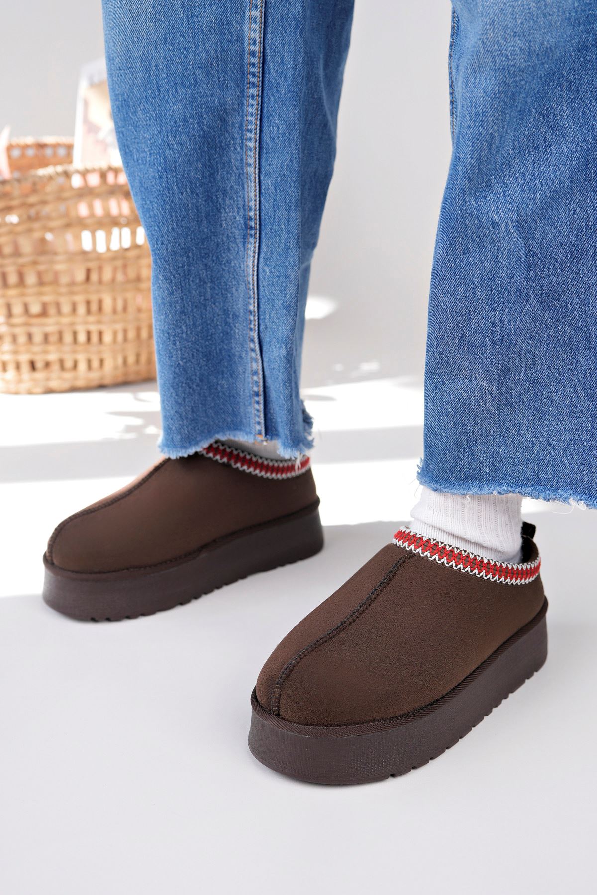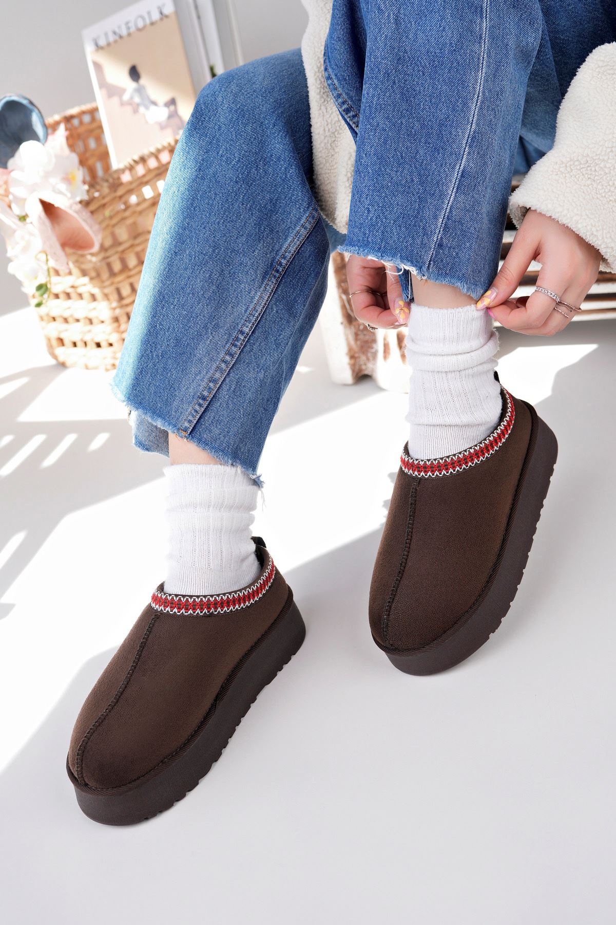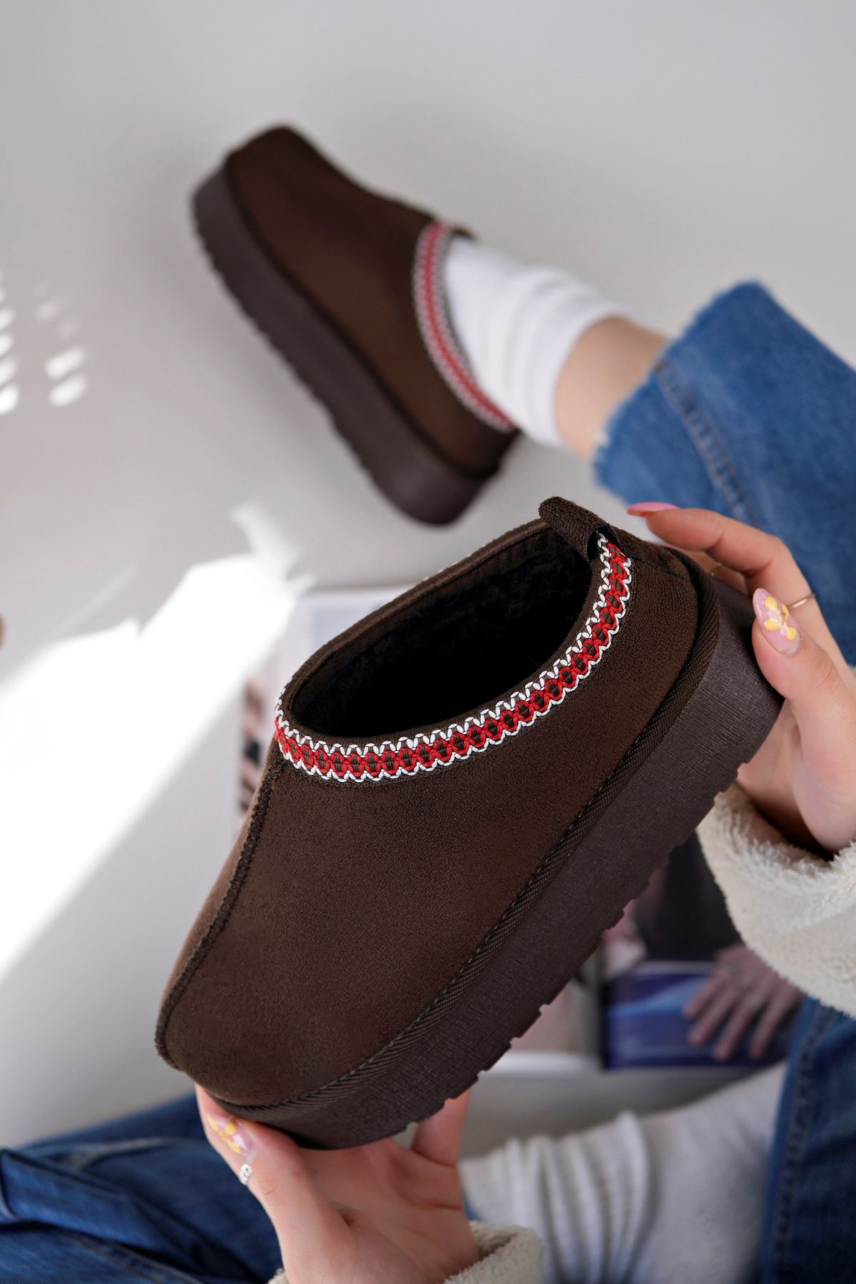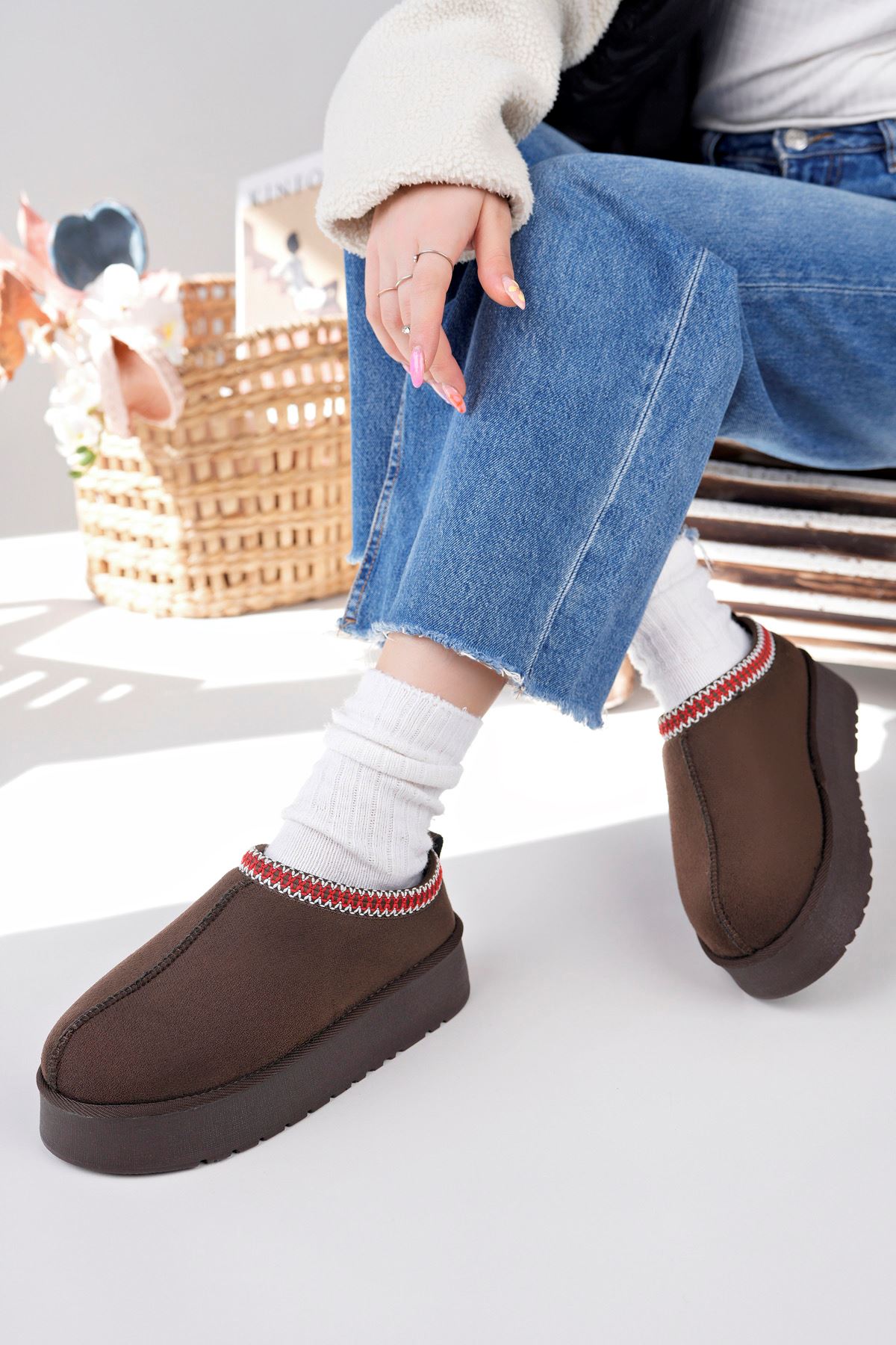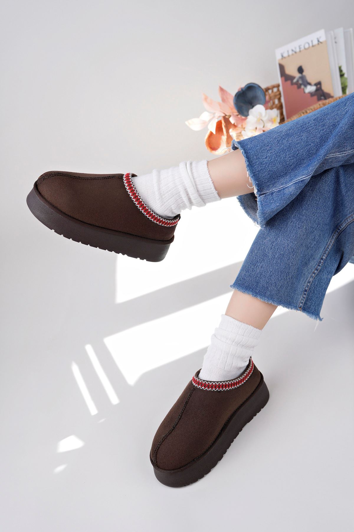 Freemax Kadın Garantili İçi Kürklü Hafif Yüksek Taban Mini Sabo Ev Terliği UggSabo.303 Kahve