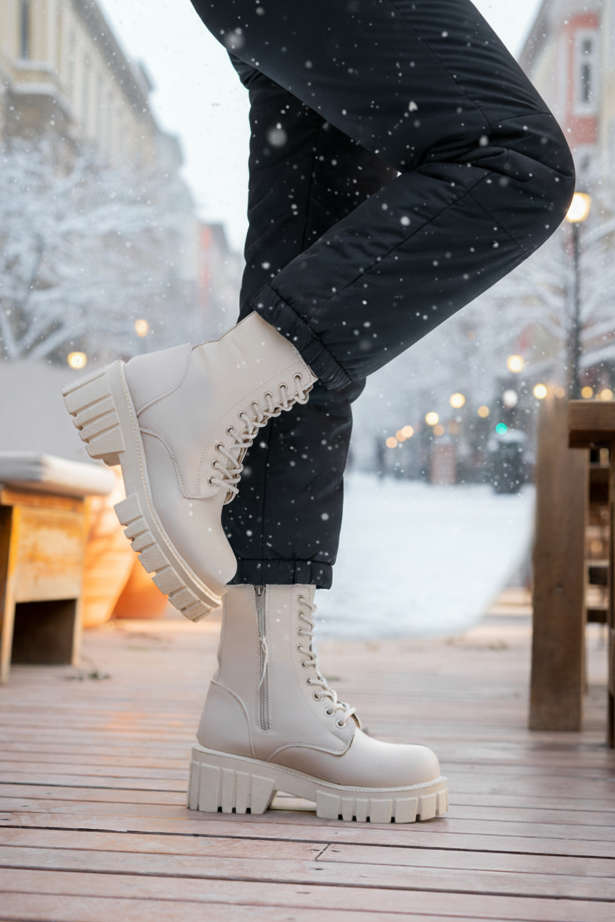 Freemax Su Geçirmez İçi Kürklü Fermuarlı Çok Hafif Dikişli Taban Garantili Kışlık Kadın Bot Freemax.ZEN.BOT.2225 Bej